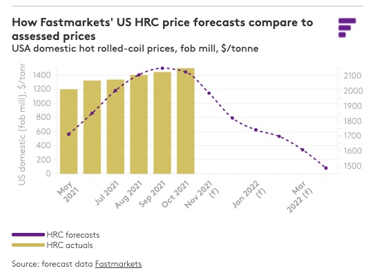 Forecasts from fastmarkets.com as well as many other analysts are predicting a down-slope in market pricing. They predict that prices for Hot Rolled Coil (HRC) products such as pipe, sheet metal, will continue to decline through 2022. However, pricing for long products, such as wire, rebar will also decline in 2022 but at a later date, Mar/Apr timeframe.