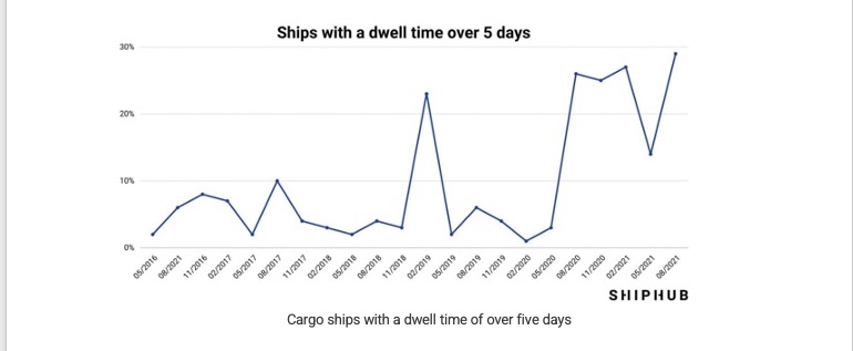 The chart below shows comparisons of ships that were dwelling over five days' time to get through port.